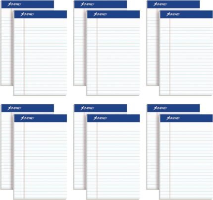Ampad 5 x 8 Legal Pads, 12 Pack, Narrow Ruled, White Paper, 50 Sheets Per Writing Pad, American Pad & Paper, Made in USA (20-364) | ā Art Stationers Best Choice