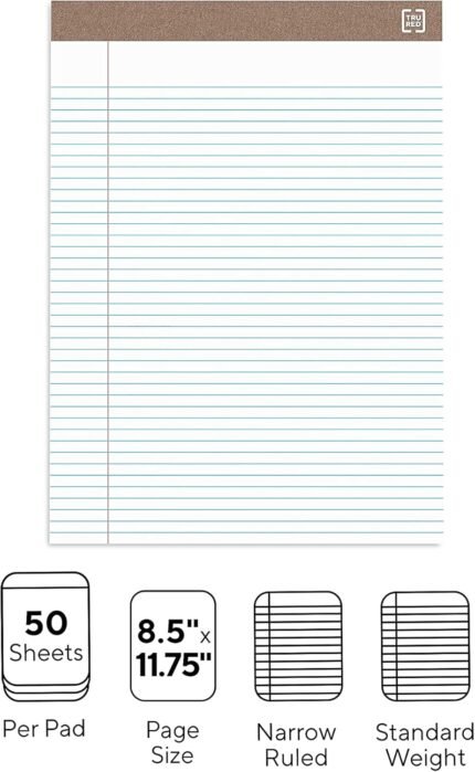 Staples TRU RED Notepads, 8.5 x 11.75 Inch, Narrow Ruled Legal Pads, Writing Pad for Home, Office, School, 12-Pack, White | ā Art Stationers Best Choice