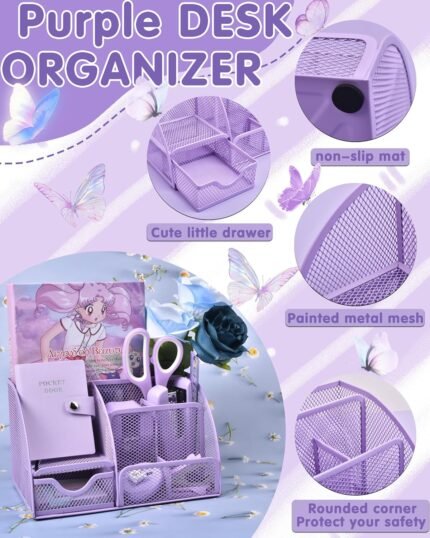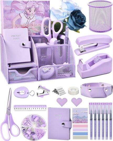 Purple Desk Accessories, 26Pcs Office Supplies and Desk Organizers, with Tape Dispenser, Stapler, Staple Remover Ect, The Perfect Hue for Focused Learning | ā Art Stationers Best Choice