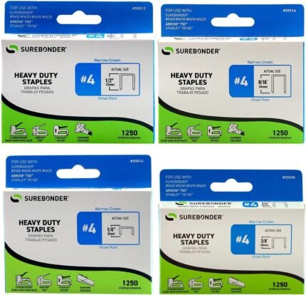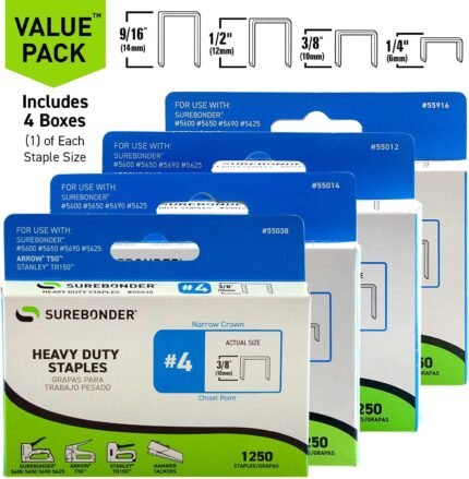 Surebonder Heavy Duty Staples No. 4 Variety Pack | Includes 5,000 T50/TRIGGERFIRE Staples | 1/4-in, 3/8-in, 1/2-in, and 9/16-in (55999) | ā Art Stationers Best Choice