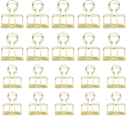 20 Pieces Gold Wire Binder Clips Assorted Sizes Stainless Steel Hollow Binder Clips Clamps for Paperwork, Sewing, Crafts, Kids, Teacher, Office School Supplies, Food Packages (10 Medium & 10 Small) | ā Art Stationers Best Choice