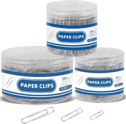 1800 Paper Clips Assorted Sizes Large, Medium and Small, Durable and Rustproof, Paperclips for Office School and Personal Use, Office Supplies Document Organizing (50mm, 33mm, 28mm) (Silver) | ā Art Stationers Best Choice