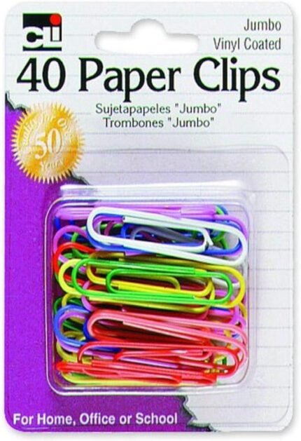 Charles Leonard Paper Clips, Jumbo Gem, Vinyl Coated, Assorted Colors, 40-Pack (80050) | ā Art Stationers Best Choice