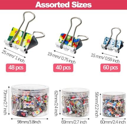 Cholemy 112 Pcs Cute Binder Clips With Box – 3 Sizes Floral Office Supplies Colored Large Medium Small Assorted Size Metal Decorative Paper Clips for Office School, 0.75 Inch, 0.98 Inch, 1.26 Inch | ā Art Stationers Best Choice