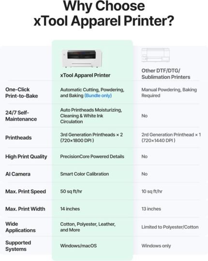 xTool Apparel Printer Bundle with Shaker Oven & Air Purifier, 14” A3 DTF Printer, One-Click Print-to-Bake, High-Speed with Dual I1600 Printheads, Multi-Fabric Compatible, 24/7 Auto-Maintenance | ā Art Stationers Best Choice