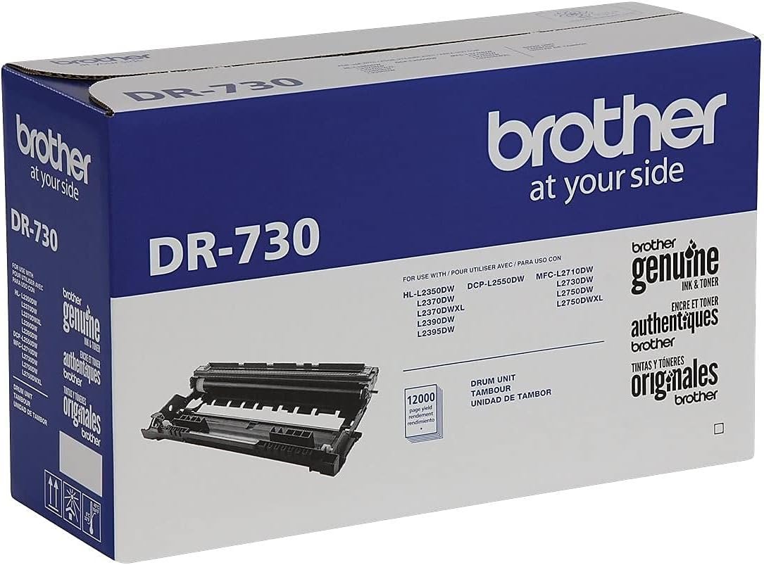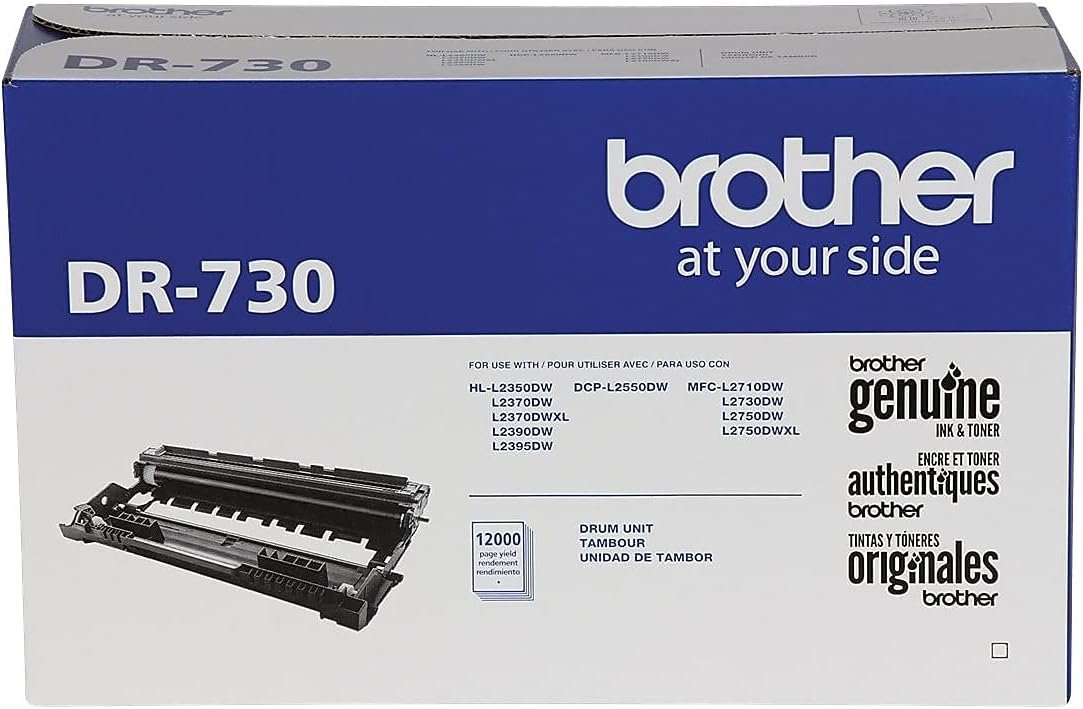 The Brother genuine DR730 drum unit delivers crisp, professional Mono laser print quality with 12, 000-page yield. Brother genuine drum units deliver superior quality and outstanding reliability. Brother genuine drum units are Intelligently engineered to work seamlessly with your Brother Printer to produce prints that withstand the test of time. Use only Brother genuine drum units for consistent results. Brother offers an environmentally responsible way for customers to dispose of their Brother branded products, including drum units at end of life. For use with: hl-l2350dw, hl-l2390dw, hl-l2395dw, hl-l2370dw, dcp-l2550dw, mfc-l2710dw, mfc-l2750dw, hl-l2370dw XL, mfc-l2750dw XL.