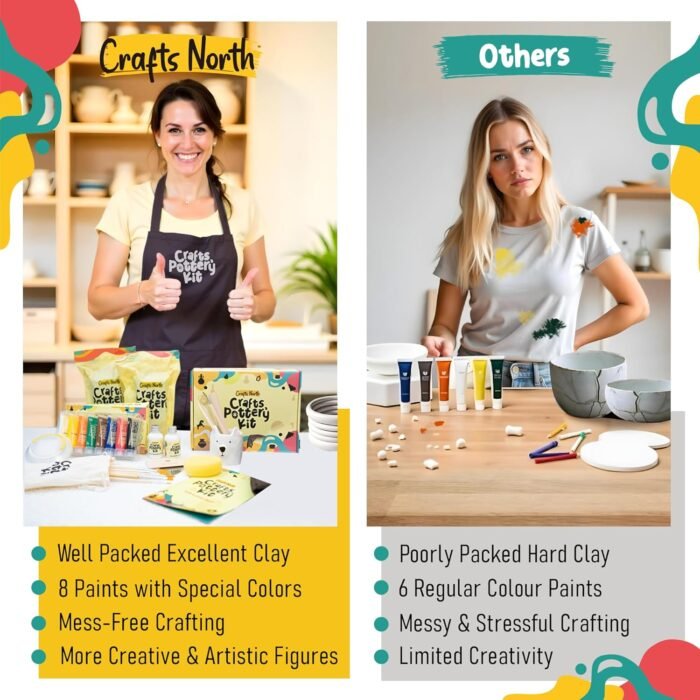 I noticed that my daughter is having a lot of fun and her time using the phone has decreased a lot because she has become busy with her creativity and I highly recommend it.She said : I was so impressed with this clay and pottery kit! It came with everything I needed to start creating right out of the box—high-quality clay, a great selection of tools, and even paints to finish my pieces. The instructions were easy to follow, making it perfect for beginners like me, but it also has enough variety for more experienced crafters to enjoy. The clay was smooth and easy to work with, and it dried nicely without cracking. I’ve already made several small bowls and figurines, and I’m excited to keep creating. Definitely worth the price and a fantastic gift idea for anyone interested in pottery!