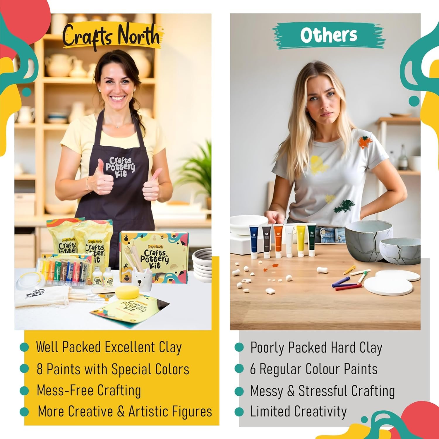Unleash your creativity with our Crafts Clay Pottery Kit, an all-inclusive set designed for both beginners and seasoned artisans. This comprehensive kit provides everything you need to craft, paint, and display your unique pottery creations.