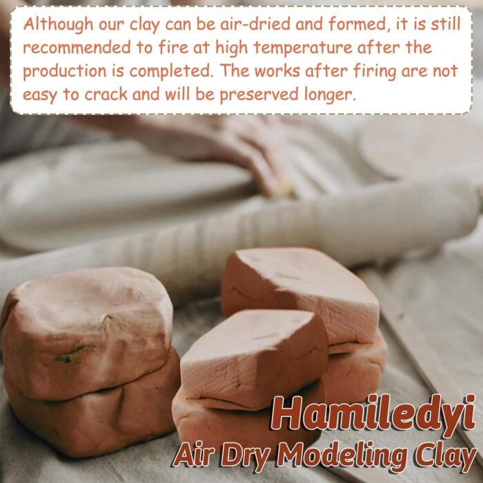 Hamiledyi pottery clay is easy to shape, take the clay out and knead it hard, then add a little water and pinch it into any shape you want. This baking clay for sculpting can be air-dried directly, but it is recommended that it be fired at high temperature after the work is completed, because air-drying does not last long and is easy to crack, and after firing it is stronger and lasts longer.