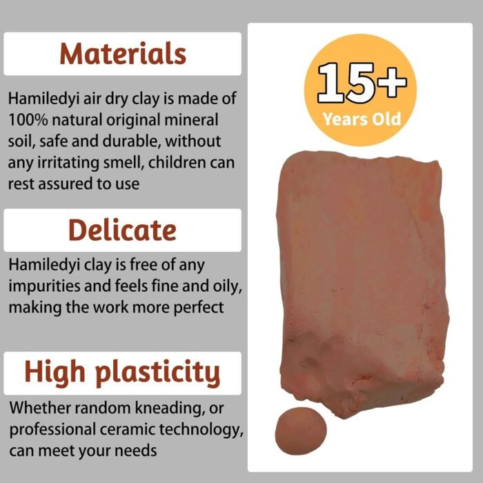 2 reviews for Hamiledyi 6.6 LB Natural Air Dry Clay with 6 Pcs Pottery Tools Self Hardening Oven Bake Clay Sculpting Clay Set All Purpose Modeling Clay for Ceramic DIY Art Class for 15+ Years Old (Brownish Red)