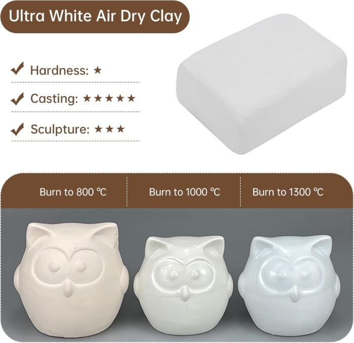 Clay Kits Air Dry Clay:It air-dries beautifully, eliminating the need for a kiln for many projects, though it’s also capable of low-fire baking for more durability.NOTE:it does crumble a bit if not handled and painted/sealed properly.