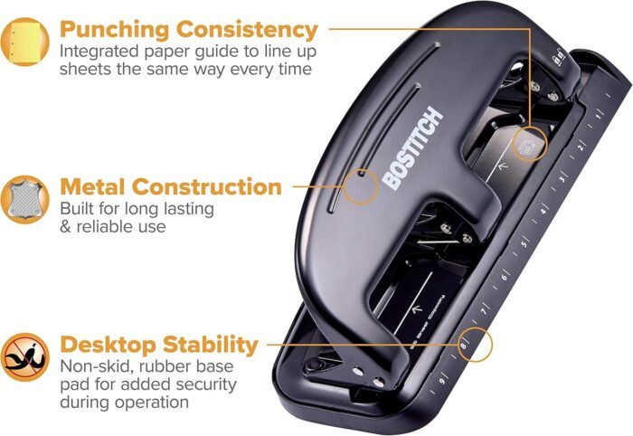 13 reviews for Bostitch Office EZ Squeeze 20 Sheet Standard 3 Hole Punch, Metal Construction, Silver/Black (HP20)