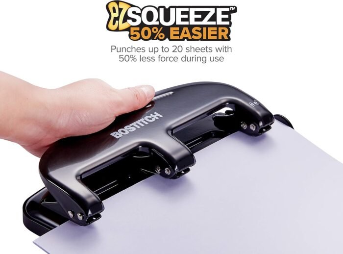 Bostitch Office EZ Squeeze 20 Sheet Standard 3 Hole Punch, Metal Construction, Silver/Black (HP20) | ⭐ Art Stationers Best Choice