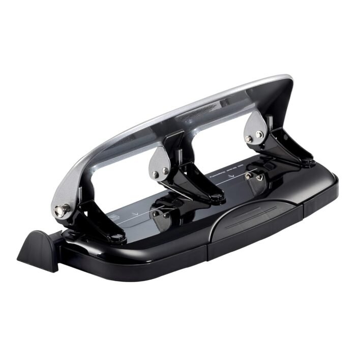 With this Bostitch three-hole punch PaperPro technology, easily three-hole punch up to 20 sheets, jam-free. Designed with sleek, comfortable curves and a durable all-metal design for long-lasting performance. To ensure consistent hole placement, the punch has an integrated paper guide and ruler. For maintaining a clean work environment, the base holds the chip waste and can be emptied through the flip-open door. Ideal for the home, office or school, this hole puncher is the perfect tool for any setting.