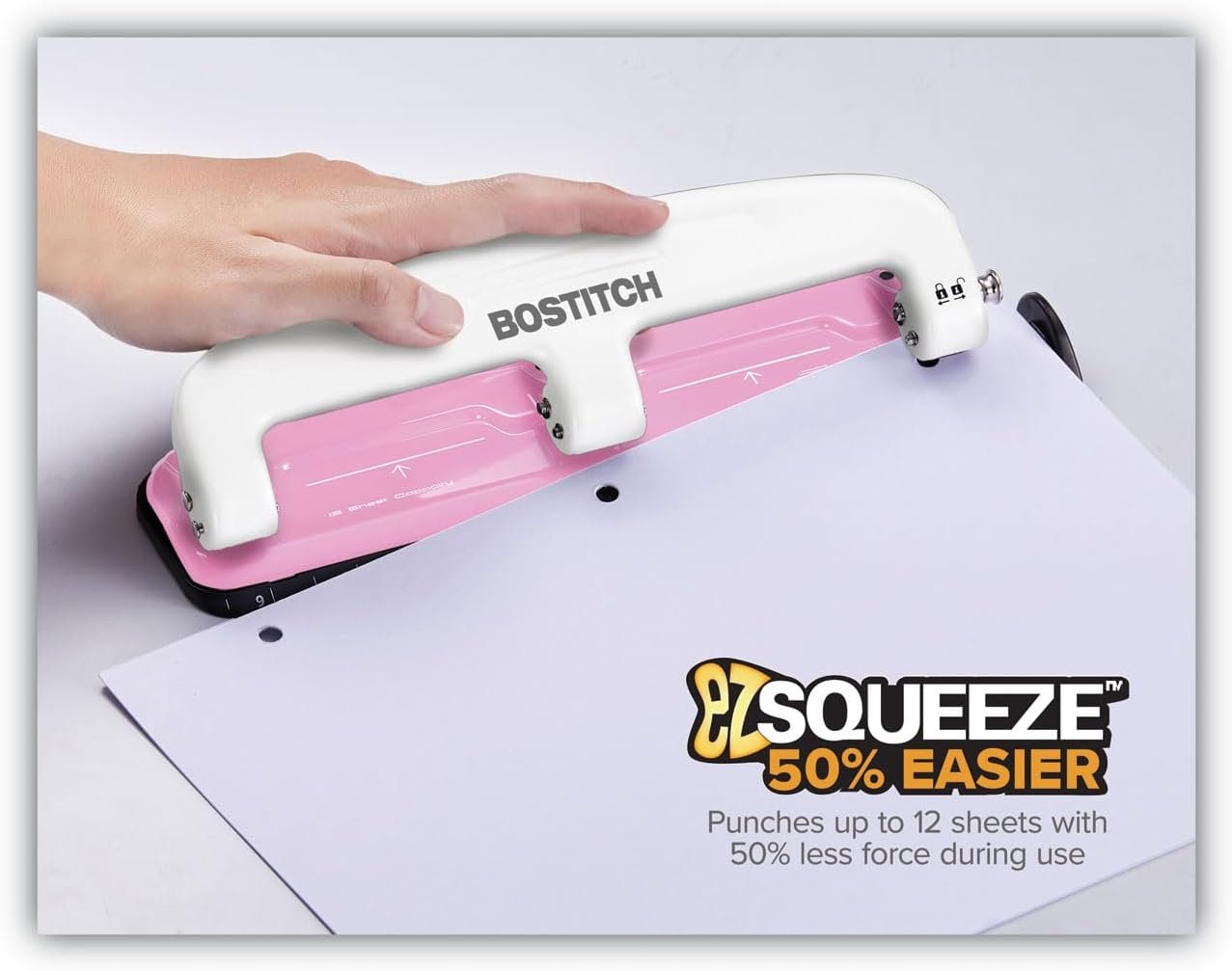 PaperPro inCOURAGE 12 Reduced Effort 3-Hole Punch, 12 Sheets, Pink (2188) | ⭐ Art Stationers Best Choice