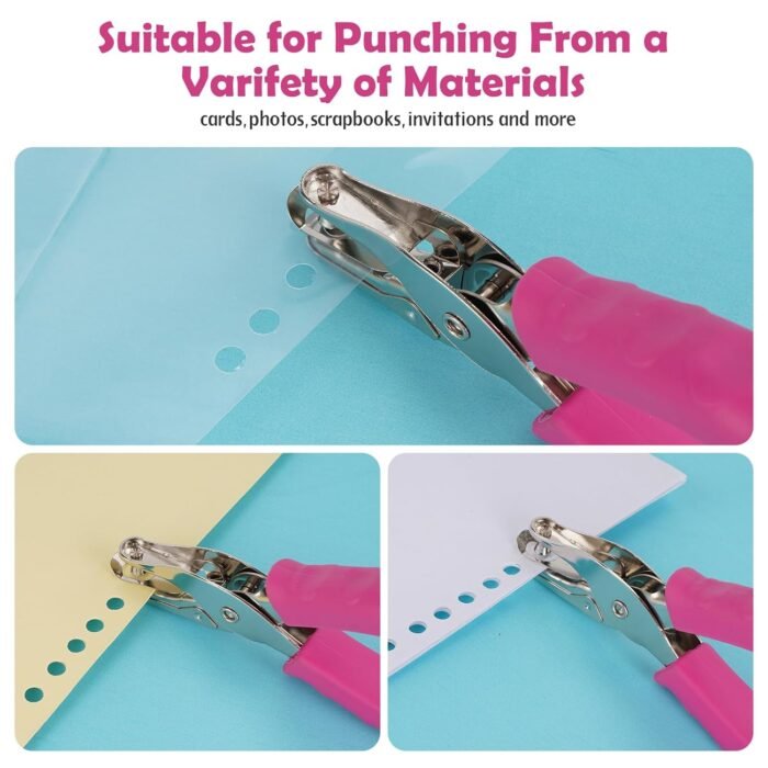 {DESCRIPTION} – Our single hole punch can punch a 1/4 inch diameter hole. The size can meet most of your needs when doing paper works. The premium one-hole paper puncher is made of high quality metal materials. It is long lasting and not easy to break after several times of cutting. This is exactly what you need and will come in handy for arts and crafts.