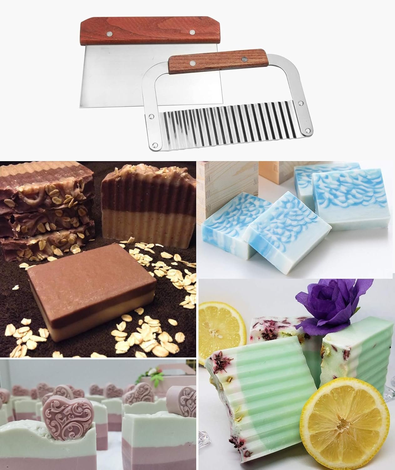 Must-have soap making accessory: works well for both cp and mp soaps.2 stainless steel wavy & straight soap mold loaf
