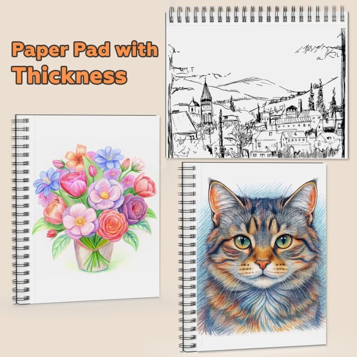 Convenient Spiral Bound–Designed with sturdy spiral bound on the side, this sketch pad provides better access to flipping the pages. You will have no trouble detaching paper—keeping the paper in good shape all the time