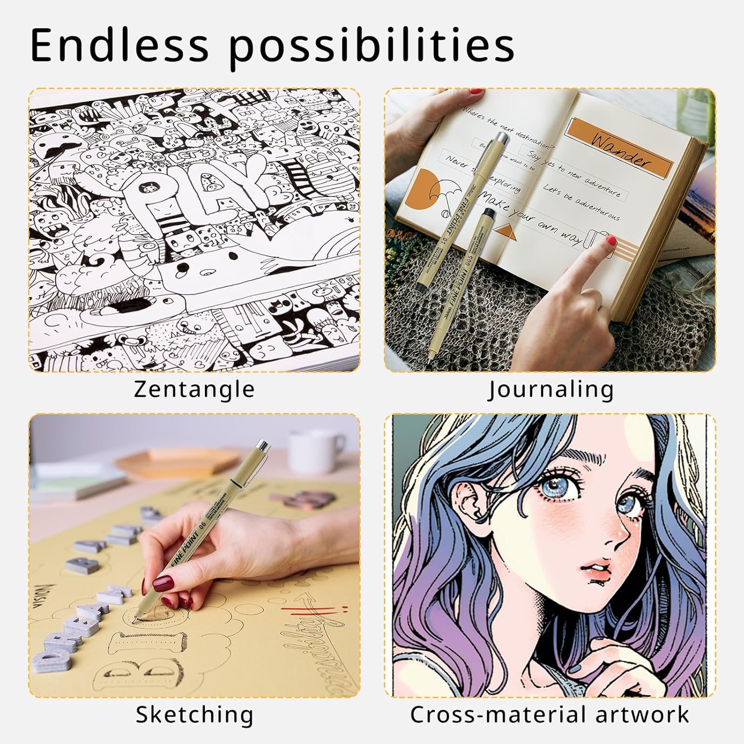 Multiliner Pens Tip sizes,for Zentangle, Sketching, Manga, Anime, Comic, Architectural Drawing, Illustration, Technical Drawing, Bullet