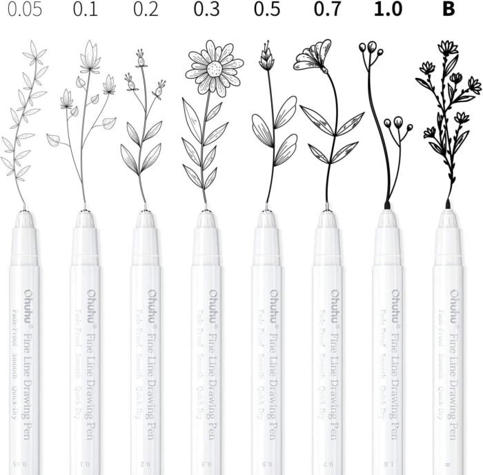 13 reviews for Ohuhu Fineliner Pens Micro Drawing Pens: 8-size Tips (Ultra-fine, Fine & Brush) Waterproof Pigment Black Ink for Illustration Drawing Journaling Sketching for Artist Beginners