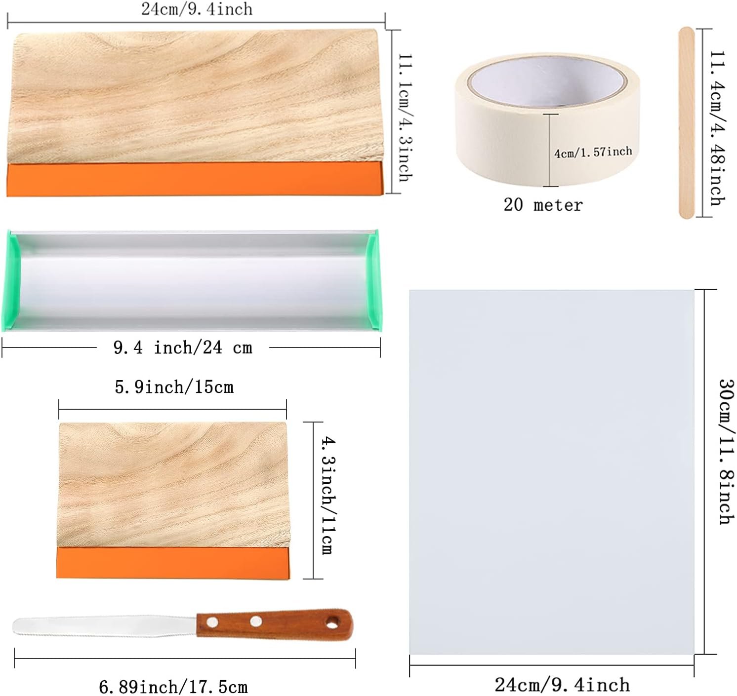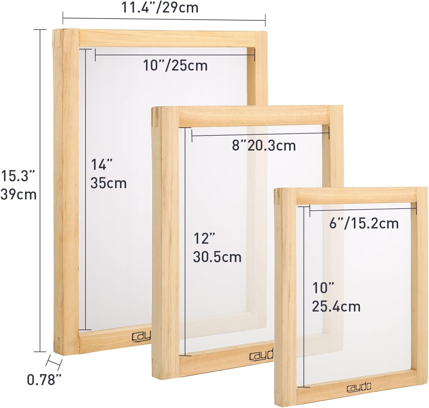ćSilk Screen Wooden FramećThree wooden frame frames are sturdy and reusable. Measuring 14inch x 10inch, 8inch x 12inch, and 6inch x 10inch, paired with various sizes of screen printing squeegees to meet your different screen printing projects