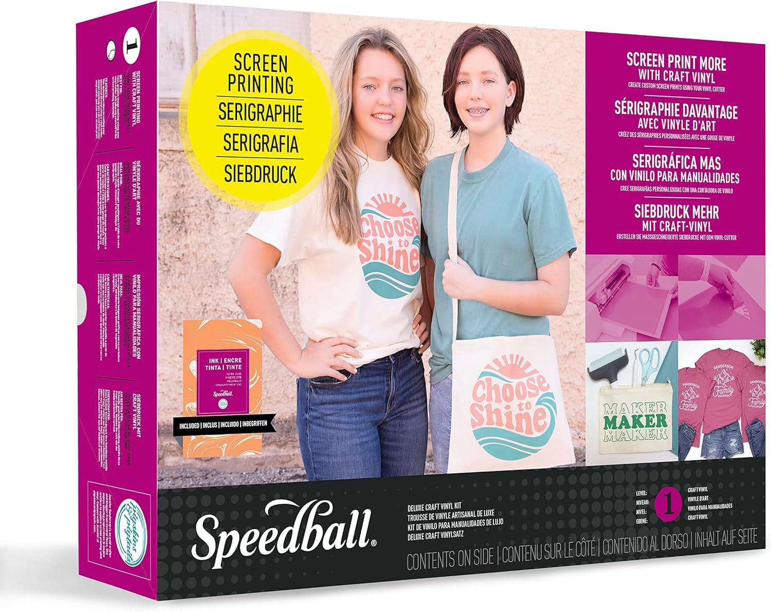DIY VINYL MEETS SCREEN PRINTING – The Speedball Beginner Screen Printing Craft Vinyl Kit combines vinyl crafting and screen printing
