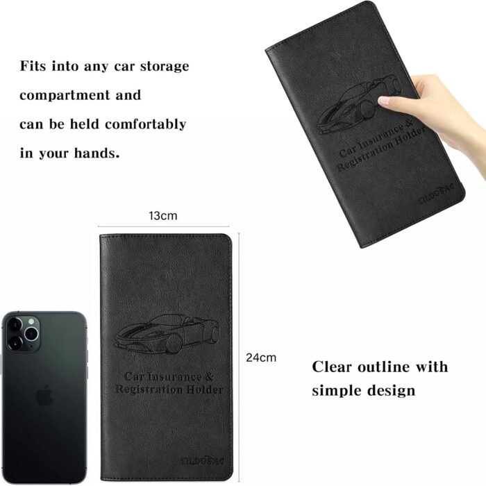 ćSlim but Enough SpacećDimensions: 9.5″ x 5.1″(24cm x 13cm) and 0.12 pounds – The slim, lightweight car insurance and registration card organizer is perfect for placement in any glovebox or console. Fits documents up to 9″x 4.7″(23cm x 12cm). It has enough space to hold all you need