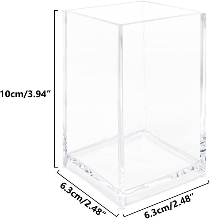 Customers find the acrylic caddy to be a quality product that looks nice and is sturdy. They appreciate its storage capacity, with one customer noting it holds about 20 regular sized pens or sharpies, and another mentioning it’s perfect for organizing makeup brushes. The size receives mixed feedback – while some find it great, others say it’s somewhat smaller than expected. Durability is also mixed, with some customers reporting broken items upon arrival.