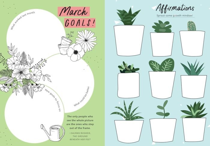 Four planner sticker sheets with over 250 stickers and four large designed stickers to customize your planner cover6″ x 8″ trim size with wire-o spiral binding for easy, lay-flat writingEnvironmentally responsible, FSC certified paperSturdy jacket for durability with internal pocket perfect for storing notes, lists, and receiptsMonthly and weekly spreads with ample writing space for planning projects and tracking appointments, school events, birthdays, meal planning, and moreFresh, matte design with removable cover bandMonthly goals pages, motivational quotes, and aesthetic, themed activitiesExtra bullet journaling pages in the backHolidays, moon phases, and observancesYear at a glance