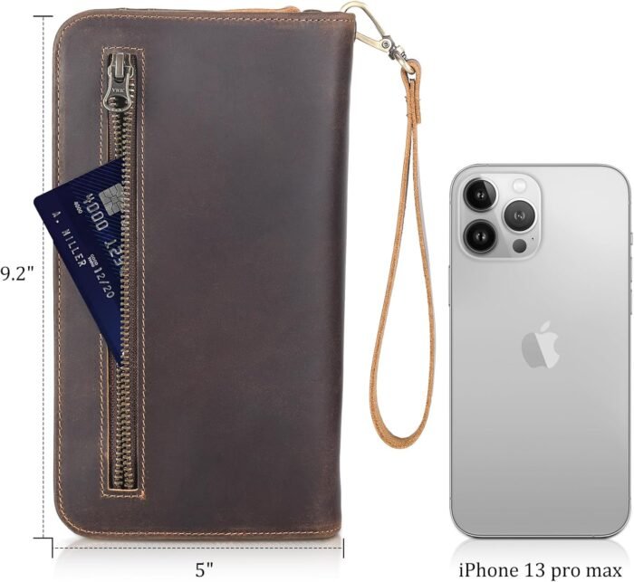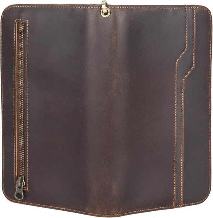 Iām impressed. Simply put, this was a great find. 100% genuine leather with no stitching errors or hanging threads. Build quality is excellent and the āwalletā pockets, zippers and storage areas are well thought out. I purchased this for my auto registration and insurance card plus any other documents normally associated with owning an automobile. I wanted something large enough to fit this but not overwhelm my glovebox. It needed a zipper closure to keep everything organized and safe., yet provide long term protection of important documents. Sometimes it will go through high usage or totally neglected but most importantly, this cannot fall apart. It would be nice if they offered black and/or pebbled leather. This is really a very nice wallet.