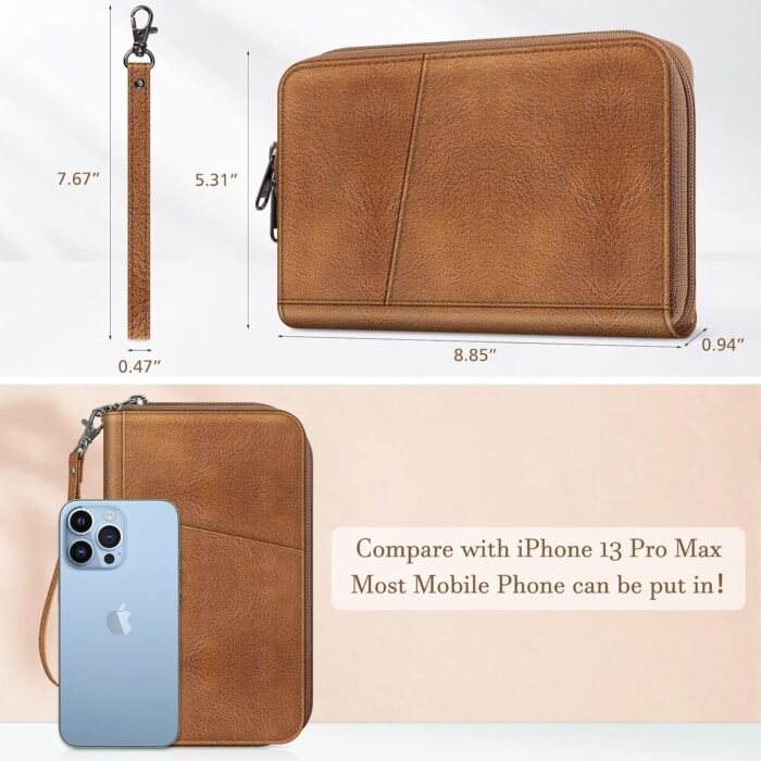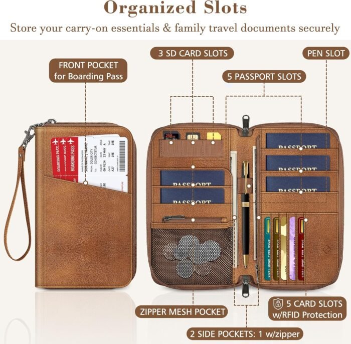 Customers appreciate the wallet’s storage capacity, with lots of space for passports and cash, and find it perfect for family travel. The design receives positive feedback, with one customer noting it looks rich and expensive, and they like how it organizes documents. The size and fit receive mixed reviews – while some say it’s big enough for travel bags, others find it too large, and while passports fit nicely for some, others report it’s too tight. The zipper quality is also mixed, with some praising it while others say it hardly zips closed.