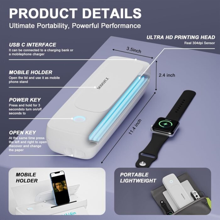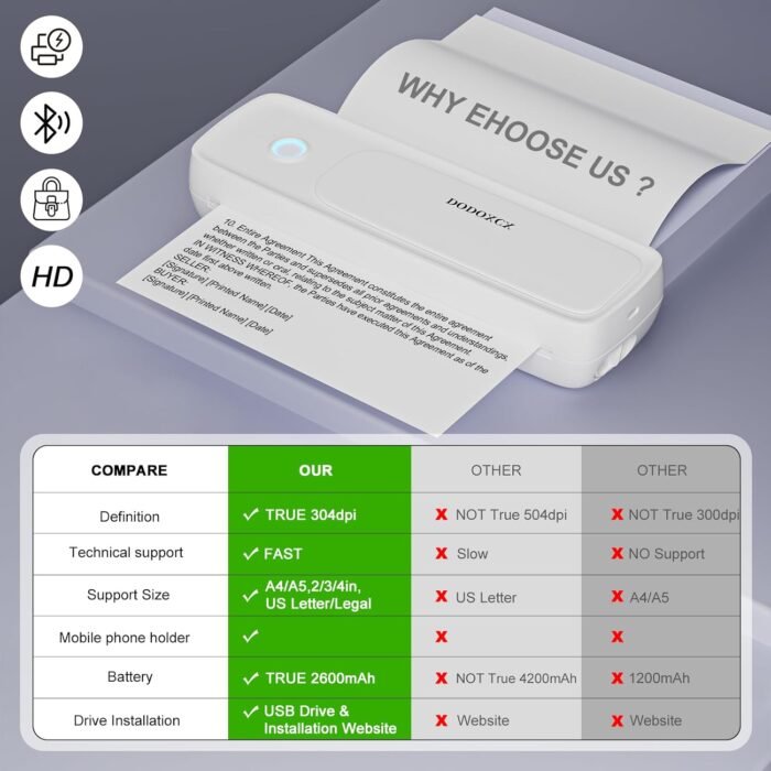Ink-Free Printing, The mobile phone printers offers an economical solution for everyday printing needs, eliminating the need for ink, toner, and ribbons. Print recipes, forms, letters, assignments, study materials, and travel documents hassle-free with advanced thermal technology. Each thermal paper costs only $0.07, resulting in substantial savings of hundreds of dollars per year. Perfect for home, small office, and school use. (Note: DODOXCX Portable printer is a thermal printer and only supports thermal paper, not support regular copy paper)
