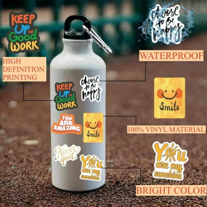 ćWide ApplicationćWaterproof stickers pack, designed for Hydro flask, water bottles, laptop, skateboard, computer, phone case, luggage, travel case, bike, guitar. Good for teens, students, teachers etc. It is not suitable for rough and uneven surface. Please clean the smooth surface before use.