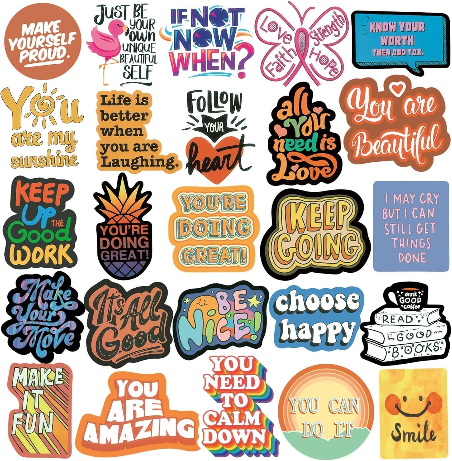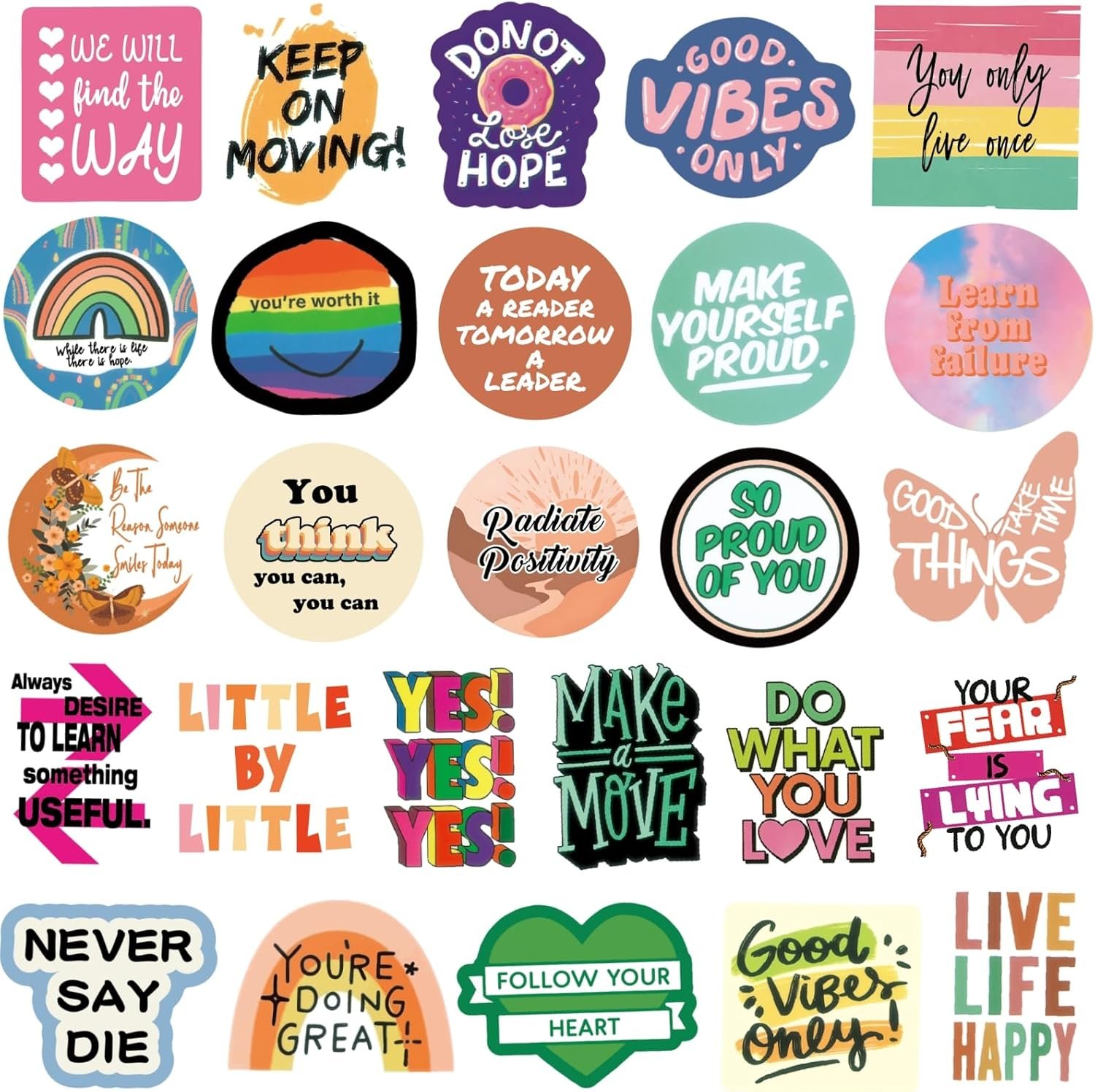 Customers find these motivational stickers well-made with great variety of designs to choose from, and appreciate their vibrant colors and positive messages. They consider them worth the price, with one customer noting how they spark meaningful conversations about growth mindset and positivity. The stickiness receives mixed feedback – while some say they stick great, others report they don’t adhere well to water bottles.