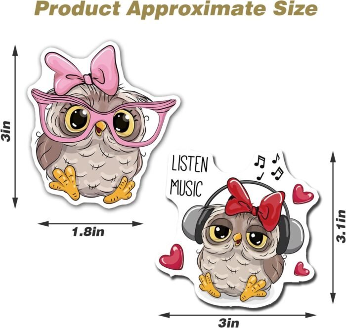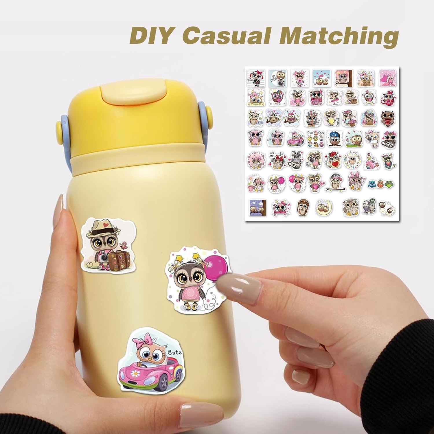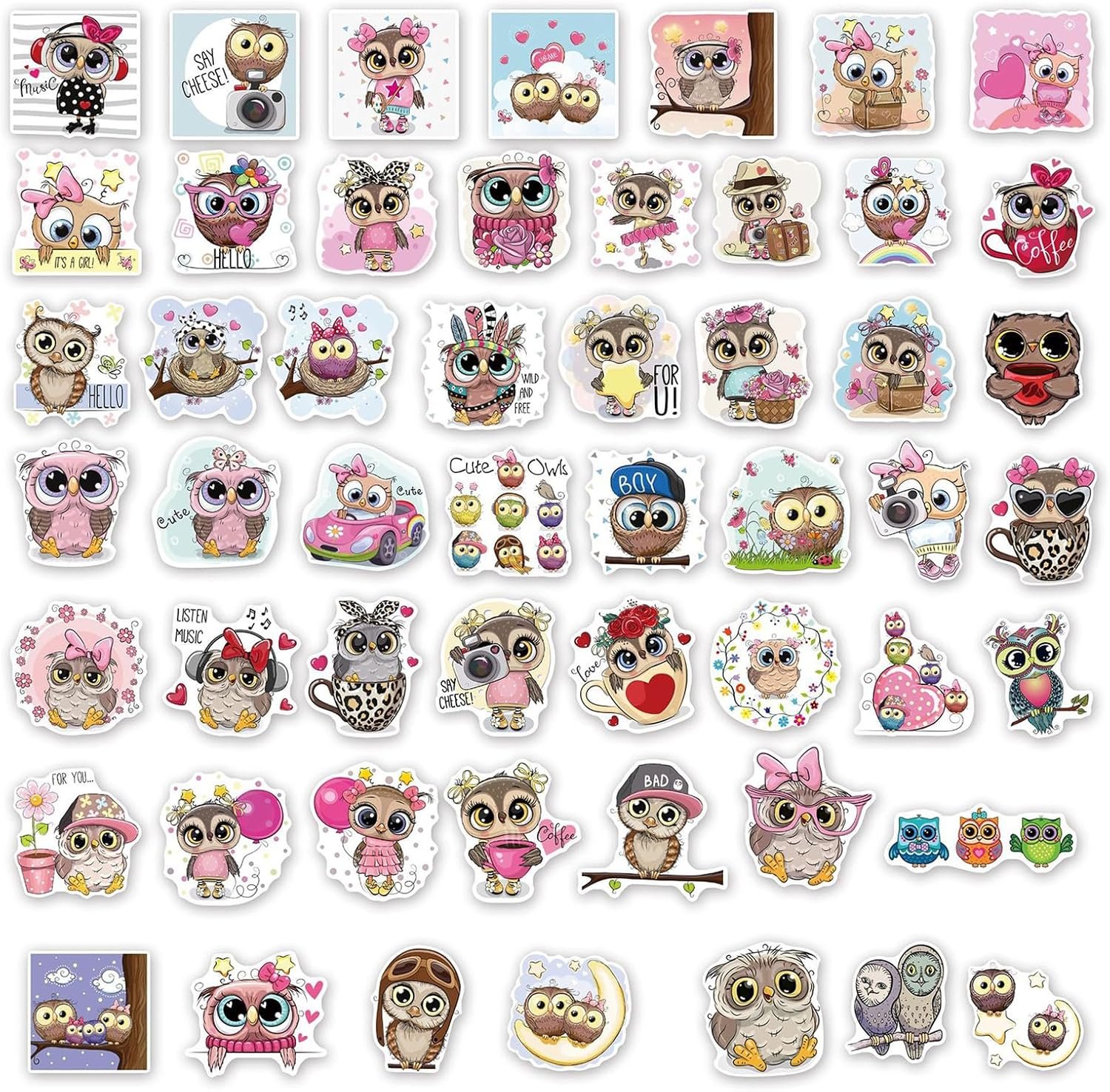 Owl stickers: There are 50 different cartoon owl sticker packs, no random deliveries, and no duplicates. All stickers are in the 2-4 inch size range.