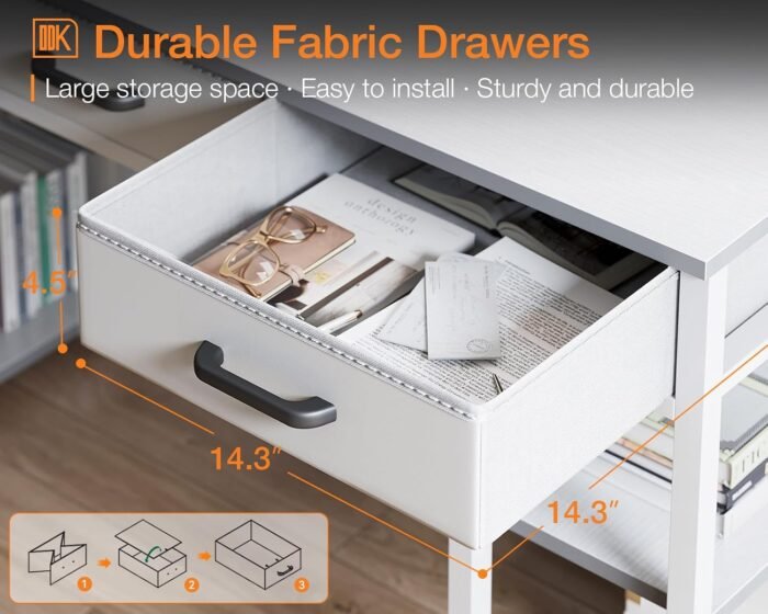 šćLarge Storage Capacity Desk with DrawersćThis desk table is designed with 3 easy to assemble fabric drawers that give a nice amount of storage for everything else you need during your work day or study day. The 3 storage drawers can stash things away. Perfect for placing your documents, office or school supplies, gaming equipment etc. You will always have an organized desktop after owing it.