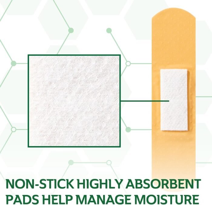 ABSORBENT PADS: Our bandages are equipped with a non-stick pad that is 2X more absorbent when compared to its dry weight, ensuring optimal moisture management.