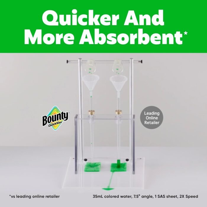Spilled your drink? Quick! The Quicker Picker Upper. Be ready to tackle messes and spills with Bounty Paper Towels! Each sheet is 2x more absorbent, so you can use less and pick up spills and messes quicker than the leading ordinary brand. Thatās why Bounty is the Quicker Picker Upper! Bounty Paper Towels are available in two sheet sizes, Full Sheet and Quick Size, so you can choose which option works best for you. Bounty Quick Size towels are versatile, so you can choose your sheet size depending on your mess. And if youāre buying the bigger packs, youāll always have Bounty on hand. Bounty has a variety of pack and roll sizes to fit your needs. Bounty products are proudly made with American jobs and weāre fully committed to creating solutions for a sustainable future. Across all our products, we consider the impact on people, forests, and the world. Thatās why for every tree we use, at least two are regrown so you can conveniently and confidently clean messes in the kitchen and around the house knowing Bounty Paper Towels is helping to keep forests greener. Bounty always has your back in and out of the kitchen so whether itās juice on the counter or ice cream on the table, we make sure spills wonāt stand a chance. *vs. leading ordinary brand