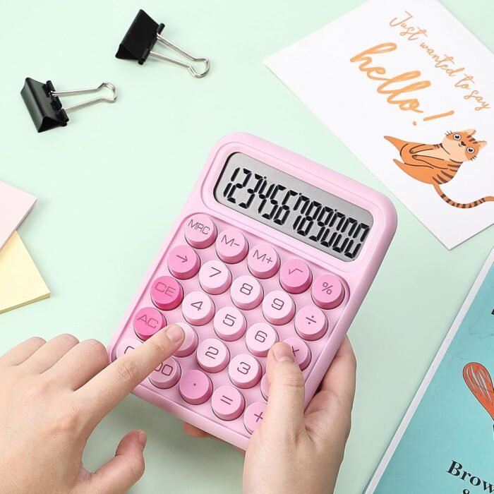 I was in a hurry. So my issues are my own fault and I did not deduct stars for them. I am very picky. I do a lot of numbers crunching due to my home business. I got tired of using my phone’s calculator or the computer calculator. So I turned to Amazon to find me a cute, clicky, large calculator that I could easily balance out all my stuff throughout the month. There were so many! I settled with this one because I have purchased items from this brand before and have always been happy. I liked the color shown in the photos. It matched my desk decor. And I liked someone’s video showing how clicky the buttons are, which I love. – My issues. Things I didn’t consider, which I should have. Closeness of the numbers, layout of the number buttons and other buttons. I should have paid attention to see if the layout was the same as a number pad, which is what I am used to. This is not. Some say what is the big deal? Well, I am so used to a regular number pad (computer) that I have become pretty fast with input. I saved a project for today when I got the calculator, and I found that the layout differences and the closeness of the buttons really hindered my ability to efficiently balance my monthly income. I had to one finger peck it rather thank use my 3 fingers like I am used to. If you don’t hit the buttons all the way, the number won’t register. I realized it is because the whole layout is off. Now, this is MY fault. Not the fault of the item. I should have thought about this before purchasing a calculator. I am not sure if I will keep it, my daughter may want it. But I will have to get something new and this time pay attention to the things I didn’t think about the first time. – The negative that is not exactly the fault of anyone either is the color accuracy. I know well enough that the color of the item may not really match the color shown on screen. I ordered pink. The screen shows a nice bright pink. The item itself is more of a muted pinkish color, leaning more towards a purple. I tried to take a photo but of course it just doesn’t show the difference accurately compared to the stock photo. – All in all, it is a cute calculator. It works and it I love the “00” button. I would recommend it for anyone who just needs a nice regular calculator!