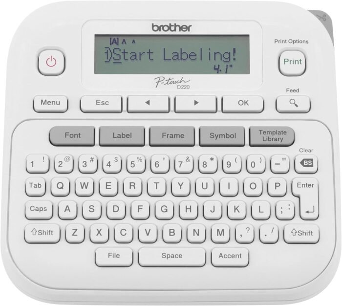 Chaos? Meet organization. The Brother P-touch PT-D220 Home / Office Everyday Label Maker is versatile, easy-to-use, and the efficient way to clear out clutter in any home or office area. What can be organized with a Brother P-touch Label Maker? Almost anything! Featuring a QWERTY keyboard and one-touch formatting keys, this portable label maker makes you a hero of organization. Create calm in cupboards and easily restore order in your home office by identifying your files, sorting the contents of your desk, and organizing cabinets and bookshelves to perfection. Creating labels is practically foolproof! Preview before you print thanks to the 15-character display screen. Have a favorite label youād like to re-print repeatedly? No problem! You can store up to 30 frequently used label layouts for quick reprinting. Go ahead and show off your unique style by choosing from 14 different fonts, 11 font styles, 99 frames, and over 600 symbols. For use with Brother Genuine TZe label tapes. Available in a wide assortment of options including laminated tapes, waterproof tapes, premium tapes with glitter, extra-strong adhesive for uneven surfaces, tamperproof security tapes, and more. Mastering your organizational to-do list just couldnāt be any easier or more satisfying. Want to design and print labels on your PC and print on label tapes up to 3/4″ (18mm)? Check out the Brother P-touch Home / Office Advanced Connected Label Maker PT-D410.