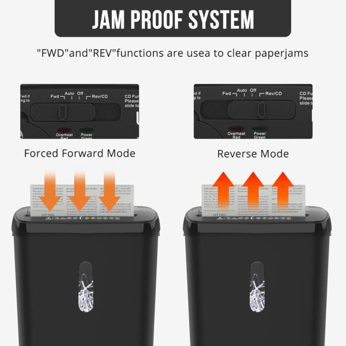 It also features a 4-mode control switch (Auto/Off/Reverse/Fwd), with the reverse mode & Fwd mode helping to release any jammed paper or forced forward/ feed,enhanced shredding strength