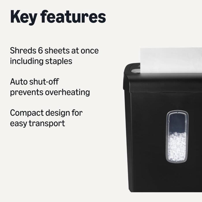 I needed a shredder that was compact enough to fit in my home office but powerful enough to handle sensitive documents, and this Amazon Basics 6-Sheet High Security Micro Cut Paper Shredder has exceeded expectations. Itās easy to use, feels solidly built, and gives me peace of mind knowing my documents are securely destroyed. After weeks of use, I can say this is an excellent buy for both performance and value.Functionality: 5/5This shredder handles everything Iāve put into it with easeāwhether itās bills, junk mail, or old credit cards. It can take staples and paper clips without issue, which saves me time. The micro-cut feature produces tiny, confetti-like shreds that are virtually impossible to reassemble, making it far superior to strip-cut or cross-cut models for security.Ease of Use: 5/5The controls are straightforward with an easy-to-understand four-mode switch, and the LED indicators make it simple to know whatās going on. The auto-feed and stop functions work smoothly, and the bin is easy to empty thanks to the carry handle. Even if youāve never used a shredder before, this one is very intuitive.Quality: 5/5Despite being compact, this shredder feels sturdy and well-constructed. The blades chew through paper and cards with no hesitation, and the motor is reliable for short shredding sessions. The cooling-off cycle is well-managed and ensures the unit doesnāt overheat or wear out prematurely.Security: 5/5The micro-cut shredding pattern is exactly what I needed for disposing of sensitive paperwork. The shred size is tiny, far smaller than what a typical cross-cut shredder produces, giving me confidence that my personal and financial information is completely secure.Pros:Compact design fits easily in small spacesMicro-cut shreds provide excellent securityHandles staples, paper clips, and credit cardsClear LED indicators and simple controlsEasy-to-empty bin with carry handleReliable performance with built-in overheat protectionCons:Made in Taiwan, a clear threat to freedom and democracy (-1 star)