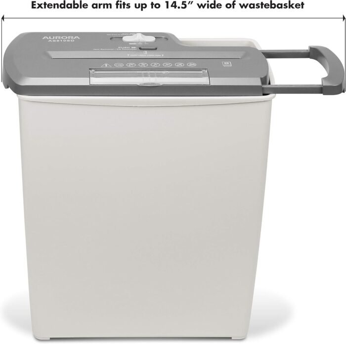 In addition to paper, the AS810SD shreds CDs and credit cards, keeping vital information from falling into the wrong hands. The throat of the shredder is 8.75 inches wide and the basket itself can hold 4.5 gallons, or 100 sheets of shredded paper.