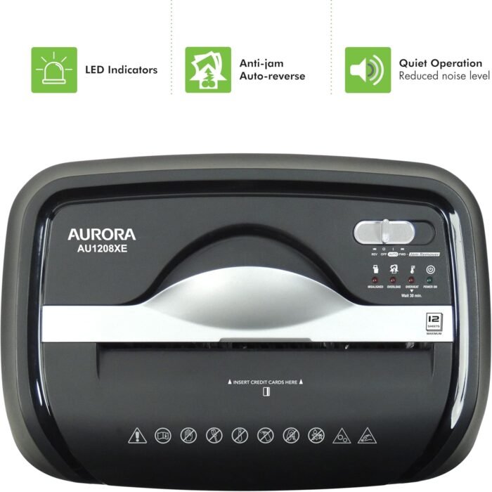 Aurora AU1208XE Anti-Jam 12-Sheet Crosscut Paper/Credit Card Shredder with 4.8 Gallon Wastebasket | ⭐ Art Stationers Best Choice