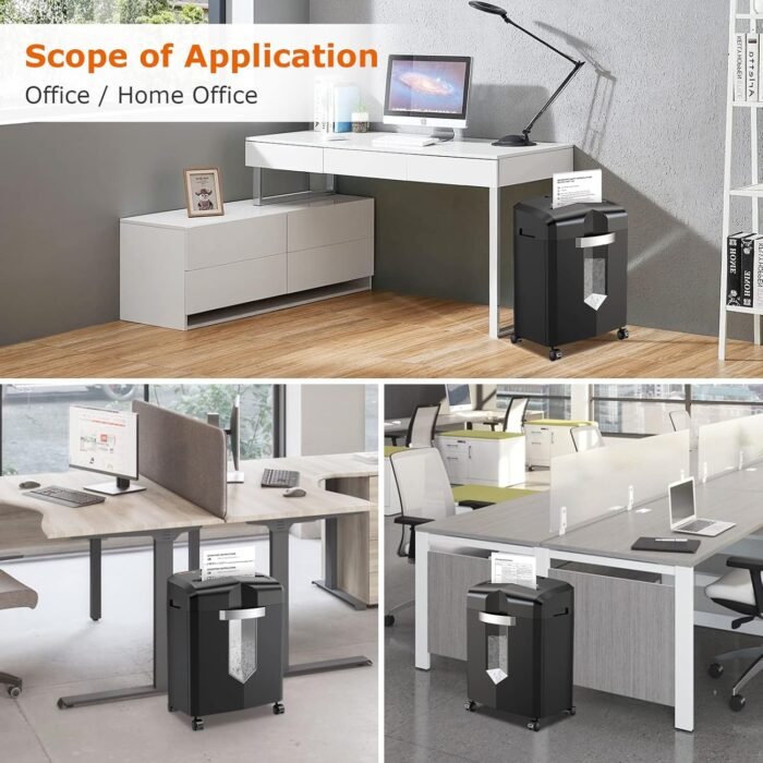 怐Personalized design怑Bonsaii paper shredder equipped with 4 Universal Casters, helps you easy to move and stay everywhere you want, Visible trash window to check the capacity of the waste basket at any time, easy and convenient.