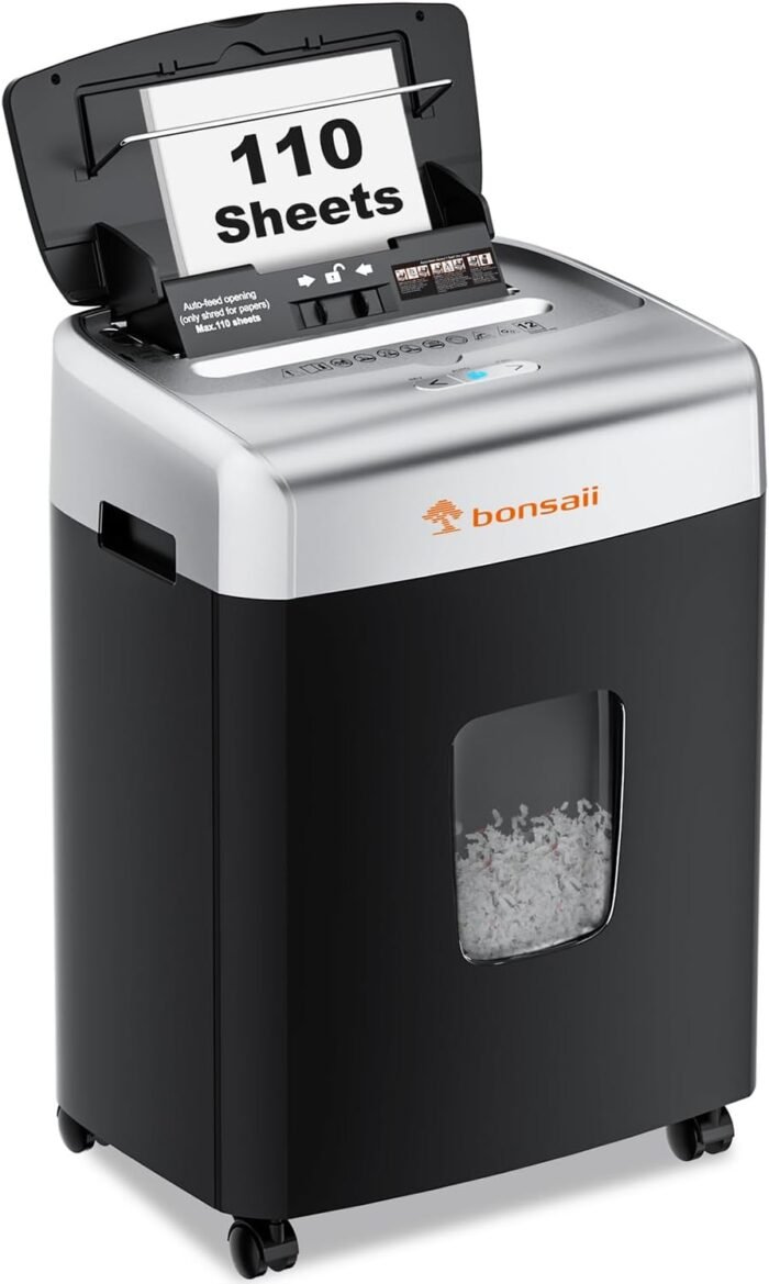 Bonsaii 110-Sheet Micro Cut Auto Feed Paper Shredder – Great for Office Use