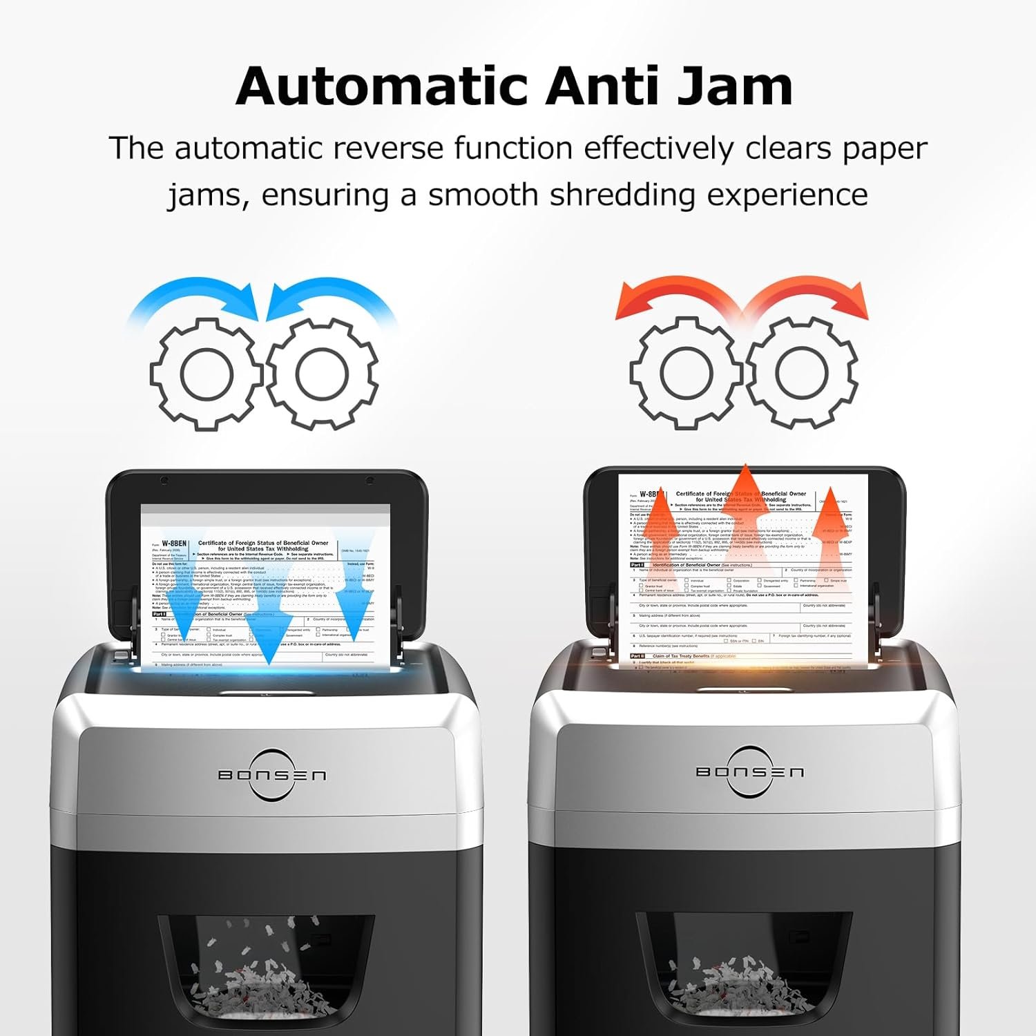 Auto & Manual Shredding: 150 sheets automatic shredding (Shredded paper only), and 12 sheets manual shredding capacity (can shred mail, cards, and staples).