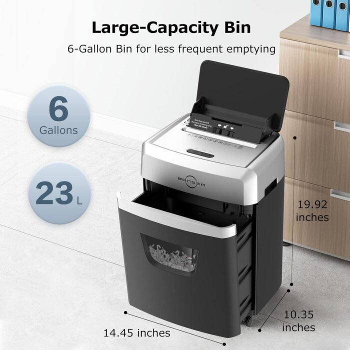 Large Capacity & Easy to move: 6-Gallon pullout bin reduces the frequency of emptying. With 360-degree universal casters, you can move the heavy duty shredder freely.