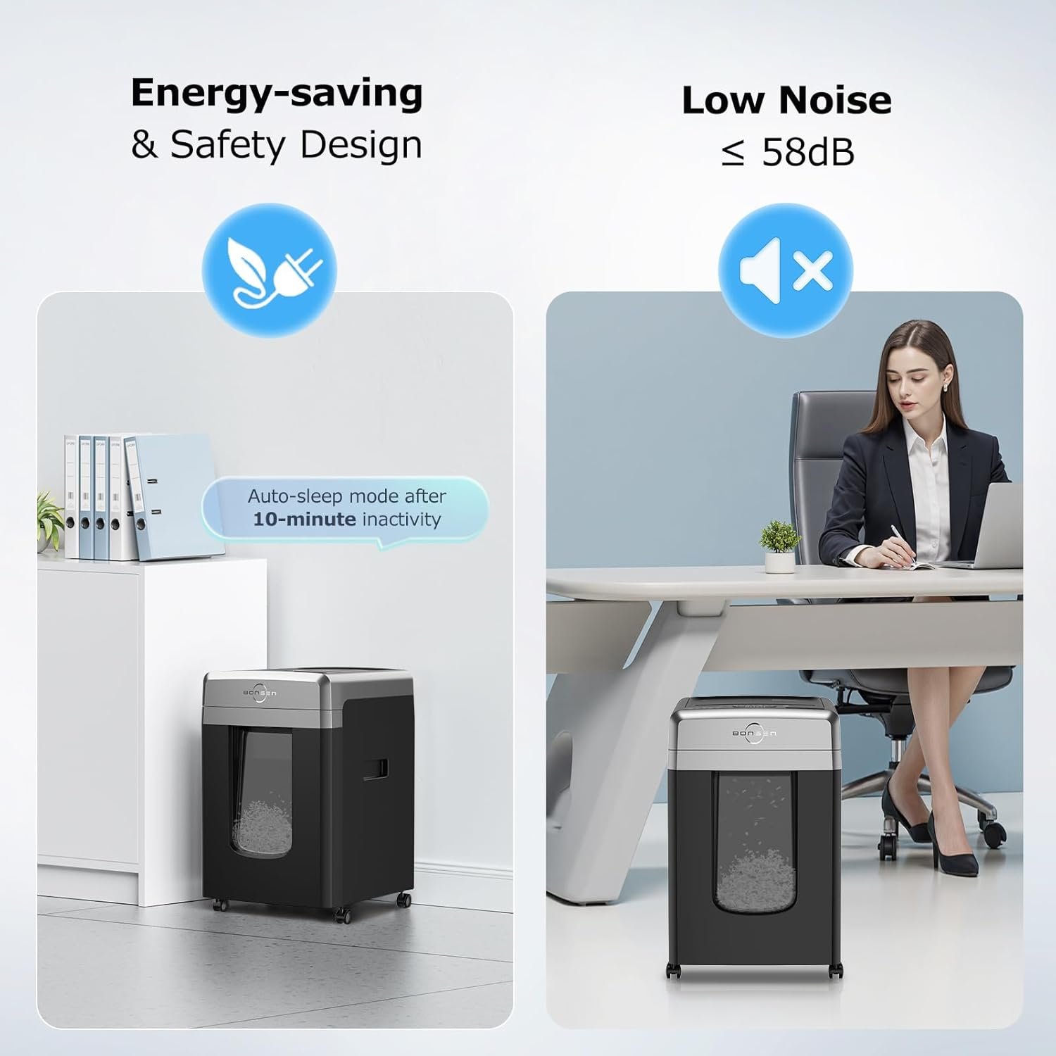 Ultra-Secure Micro-Cut & Quiet Operation: Get maximum document security with confetti-like shreds measuring just 5/32″ x 15/32″ (4 x 12 mm); Operates at a quiet ⤠58 dB, ideal for shared workspaces