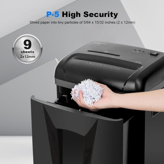 【Military-Grade P5 Security】 Meets stringent DIN P5 confidentiality standards, shredding documents into ultra-secure 2x12mm (5/64″x15/32″) particles—smaller than a grain of rice to prevent data reconstruction.
